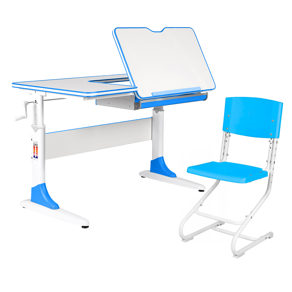 С помощью специальной ручки, ребёнок сам сможет плавно и легко отрегулировать высоту парты.